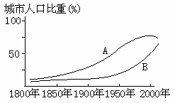 (1)A、B曲线中代表发达国家城市化进程的是?曲线,代表发展中国家的是?曲线(2分)参考答案: