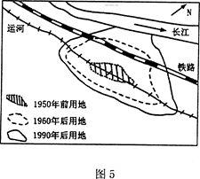 1、单选题 右图5是某城市用地变化示意图,读图完成小题。