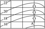 1、综合题 下图为某海区海水表层等温线分布示意图。图中纵横直线表示经纬线,曲线表示海水等温线(单位:℃),箭头表示洋流流向。读图完成下列各题。