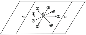 2、单选题 下图示意某一等高面。M、N为等压线,其气压值分别为PM、PN,M、N之间的气压梯度相同。①~⑧是只考虑水平受力,不计空气垂直运动时,O点空气运动的可能方向。回答问题。1.若此图表示北半球,PM<PN,则O点风向为2.若此图表示近地面等压面,PM>PN,则O点风向为3.近地面,空气作水平运动时,所受摩擦力与地转偏向力的合力方向
