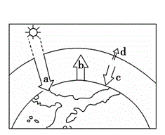 1、单选题 大气温室效应形成示意图。如图所示,导致全球变暖、欧洲冬季气温异常偏高的过程主要是