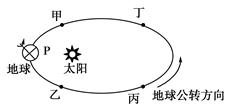 小题1:图示P表示近日点附近,由于地球公转到达近日点附近,公转速度最快,故图示甲乙之间公转运动所用的时间最少。
