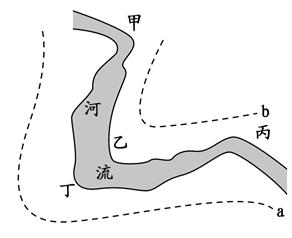 2、单选题 下图中虚线为等压线且 a 大于 b,以下四处河岸侵蚀较重且此时最可能出现阴雨天气的是(? )