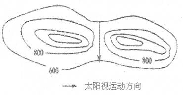 4、单选题 为发展旅游业,某地政府在9月20日至24日隆重推出“双龙戏珠”节。该地每年都有几天,在太阳下山时,可见到太阳徐徐从鞍部落下,形成“双龙戏珠”的地理奇观。读该地等高线地形图回答题。