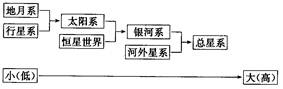 点评:本题难度较小,主要考查天体、天体系统、太阳系的相关知识。宇宙中有多种多样的物质,例如星云、恒星、行星、彗星、流星体、星际物资等,这些物质统称天体。天体之间相互绕转和相互吸引,形成天体系统。天体系统有以下几个层次: