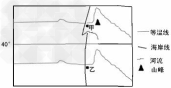 2、单选题 下图甲乙两地位于同一经线上相距300 公里,乙地降水多于甲,年太阳辐射少于甲。读图回答1-2 题。