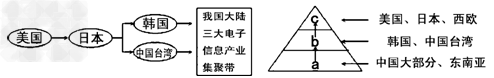 2、单选题 下图是“我国承接全球IT产业转移的路径图”和“IT全球化竞争的金字塔模型示意图”,读图完成1—2题。