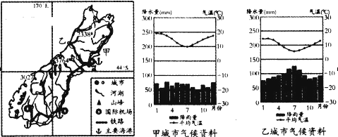 1、单选题 以美国为代表的世界乳畜生产,以规模化、设施化为显著特点。下图所示国家采用的是粗放的放牧饲养方式,但在国际乳制品贸易竞争中占上风。读该国部分区域及其甲乙两城市气候资料图,回答下列各题。