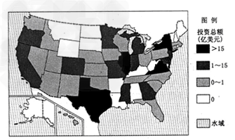 4、单选题 下图示意近 8?年来中国对美国投资总额分布。读图完成 1-2 题。