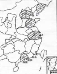 3、综合题 读“中国部分地区图”,填出图中字母代表的地理事物,并解答相应问题。