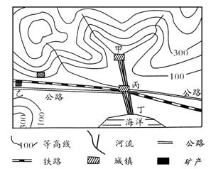 小题2:实际交通线一般是依据哪个因素来建设的( )
