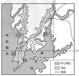 2、单选题 下图为世界某城市分布示意图,图中最适宜布局海港的是