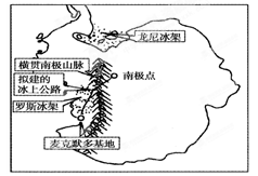 4、单选题 据报道美国准备花5年时间,耗资1.25亿美元建南极“高速公路”。这条特殊的“高速公路”起点站是麦克默多,横跨罗斯冰架,越过南极山脉,到达南极点,全程1600千米。读图回答问题。