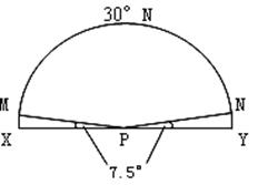 5、综合题 下图为部分30°N的纬线,P为北极点,M、N分别为晨线和昏线与30°N的纬线的交点,∠MPX=∠NPY=7.5°,PY为0°经线,此时纬度为80º纬线的某地,当地方为0时时,太阳正好位于地平线上。完成下列各题。(8分)