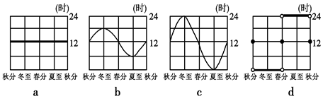 4、单选题 读不同地点昼长随季节变化统计曲线图,图中a、b、c、d四地,自转线速度由快到慢依次是