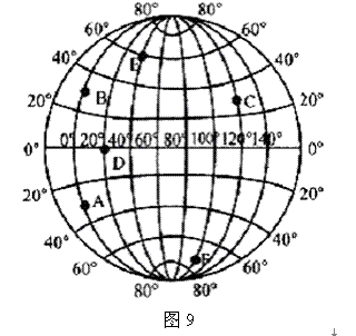 (1)A、B、C、D、E、F六处地球自转线速度最大的是________,线速度最小的是________;六处的自转角速度的关系是_______ 。
