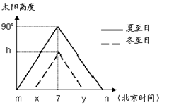 1、单选题 图为夏至日和冬至日甲地太阳高度日变化。下列关于甲地的叙述,正确的是