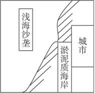 本题解析:本题是一道综合性较强的题目,考查海水运动等动力因素对海岸地形的影响。海水是通过冲击力塑造海洋地貌的,浅海沙垄作为一个阻滞物体,必然减小波浪对海岸的冲击力。反之,如果破坏沙垄,势必使波浪对海岸的冲击力增大,从而导致淤泥质海岸后退,良田被毁,城市受到威胁。