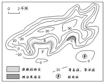 (1)判断A地的海岸类型,并按照《联合国海洋法公约》的规定,指出P海域应属于我国海洋权益的何种类型。(2分)