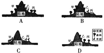 1、图中甲、乙、丙三处植被分布正确的是