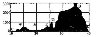 3、综合题 读“某大洲沿5°S地形剖面图”,其中横坐标为经度(单位为度),纵坐标为海拔(单位为米)。回答下列问题。