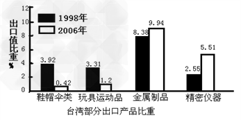 1.台湾部分产品出口比重下降,说明其在竞争中丧失了