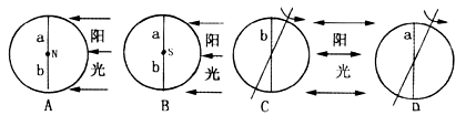 4、单选题 如下图用a表示晨线,b表示昏线,下列各图表示正确的是 ( )