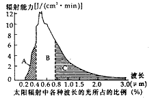 ? A、太阳辐射中能量最强部分的波长在0.4—0.76微米之间