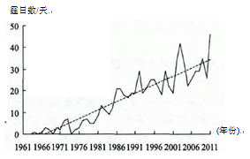 2、单选题 霾是大量极细微的干尘粒等均匀地浮游在空中,使水平能见度小于10km的空气普遍浑浊现象。读浙江省冬季雾霾日数统计图(下图),回答下列各题。
