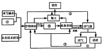 2、单选题 下图为我国某地区农业科技园区循环经济模式图。读图回答1—2题。