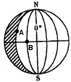 1、综合题 读图(阴影部分为黑夜),回答下列各题。