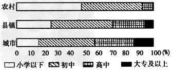 3、单选题 下图为我国城乡15~64岁各种受教育水平人口比重图。读图,回答(1)~(2)题。?