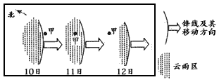 3、单选题 锋线指锋面与地面的交线,下图反映某地区某年2月10日~12日的锋线移动情况。