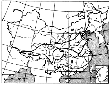 3、单选题 读“我国大陆性气候和海洋性气候”分布图,图中Ⅰ为海洋性气候区,Ⅱ为海洋性过渡气候区,Ⅲ为大陆性过渡气候区,Ⅳ为大陆性气候区。回答下列小题。