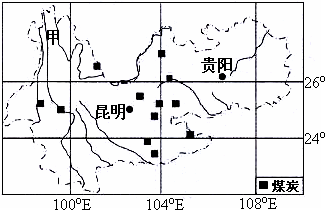 (2)云南电力资源主要是水电和火电。从图中可以看出云南煤炭资源丰富,可以发展火电;根据所学中国区域地理知识可以分析出,云南降水丰富,河流水量大,地势起伏大,落差大水能资源丰富,可以发展水电。
