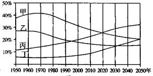 2、单选题 下图中四条曲线代表发达国家与发展中国家的少年儿童人口系数(0?15岁少年儿 童占总人口的比例)和老龄人口系数(60岁以上老人占总人口数的比例)变化曲线。读图,回答下列各题。