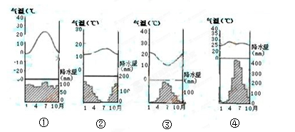 3、单选题 下图表示世界四个地点的气温降水状况。据此回答以下问题。