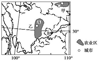 (2)该城商务区位于A、B、C三处的____________处,理由是_____________________ 。