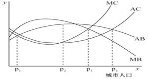 5、单选题 图中分别表示不同含义的“最佳人口规模”。图中四条曲线的含义分别是:MB:城市每增加一个单位成员对应的城市效益的增加量,MC:城市每增加一个单位成员对应的城市费用增加量,AB:城市中人均效益,AC:城市人均生活费用。其中,对现有居民来说最合适和对决策者来说最合适(假如决策者仅仅考虑最大的城市总效益——社会效益)的最小城市规模分别是(?)