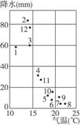 图2?某地气温和降水月份分配示意图