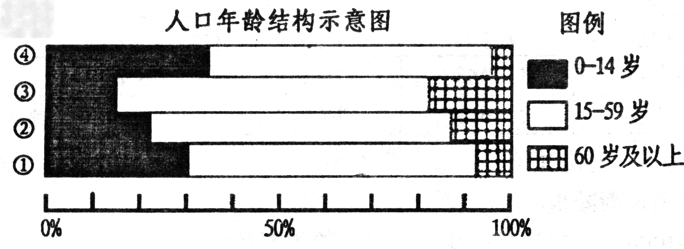 4、单选题 近三十年来,我国的人口年龄构成发生明显变化,下图是我国某省四个不同年份的人口年龄构成示意图,回答1~2题。
