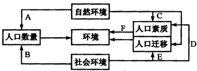 2、综合题 读“人口与环境关系示意图”,回答相关问题: