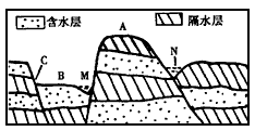 (2)从地质构造上,C是__________,地下水出露于地表,在这里形成________________。