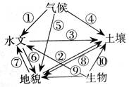 2、单选题 下图为陆地环境主要构成要素的相互作用关联图,读图完成10~11题。(双项)