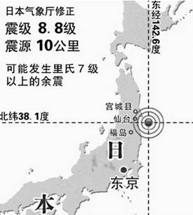 4、单选题 北京时间2011年3月11日13时46分,日本发生8.8级地震,震中位于日本本州岛仙台港东130公里处,震源深度24千米,东京有强烈震感。读图回答下列各题。