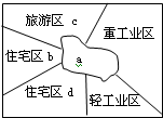小题2:图示重工业区位于城市的东北方向,故判断该地区可能盛行西南风;河流自西向东流;b靠近旅游区,环境优美,故形成高级住宅区,C正确;地价最高的是中心商务区。
