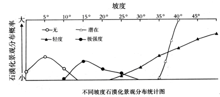(2)潜在石漠化一般出现在地形坡度 以上地区。然而,实际上无石漠化现象最可能出现在坡度 以下地区;严重石漠化出现的坡度范围是 ? (3分)