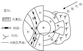 5、单选题 下图表示某城市空间结构示意图。读图,完成题。