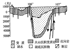 3、单选题 读沿北纬55°所作地质剖面图, 回答1—2题。