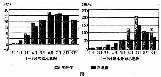 (4)丙图为乙图地区某年1~9月气候直方图,据图分析该地区l-----9月农业生产过程中,